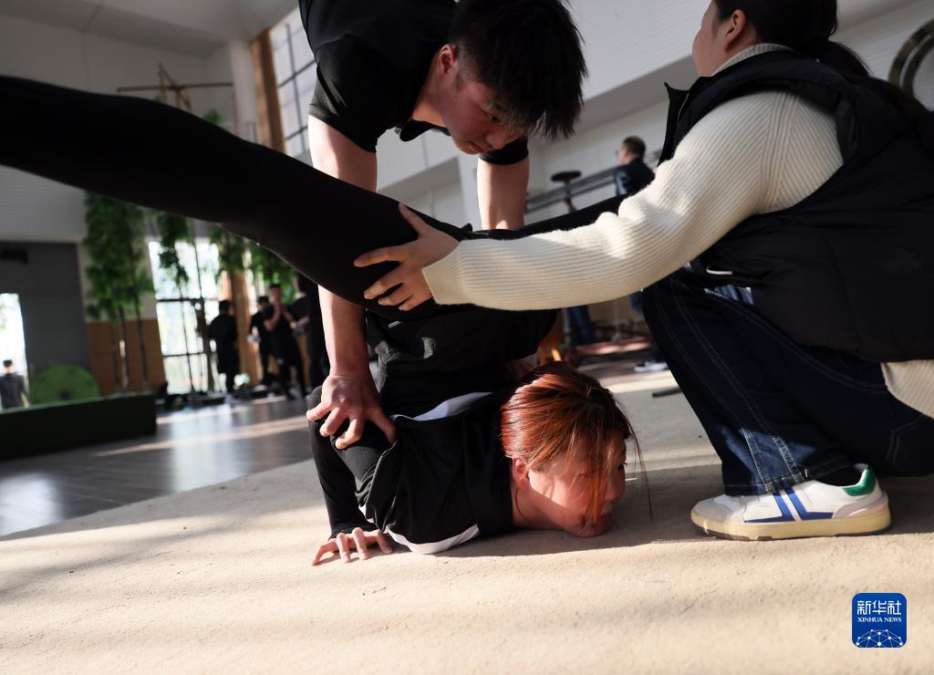 3月31日,演員在位于江蘇省鹽城市建湖縣的江蘇省雜技團訓練。