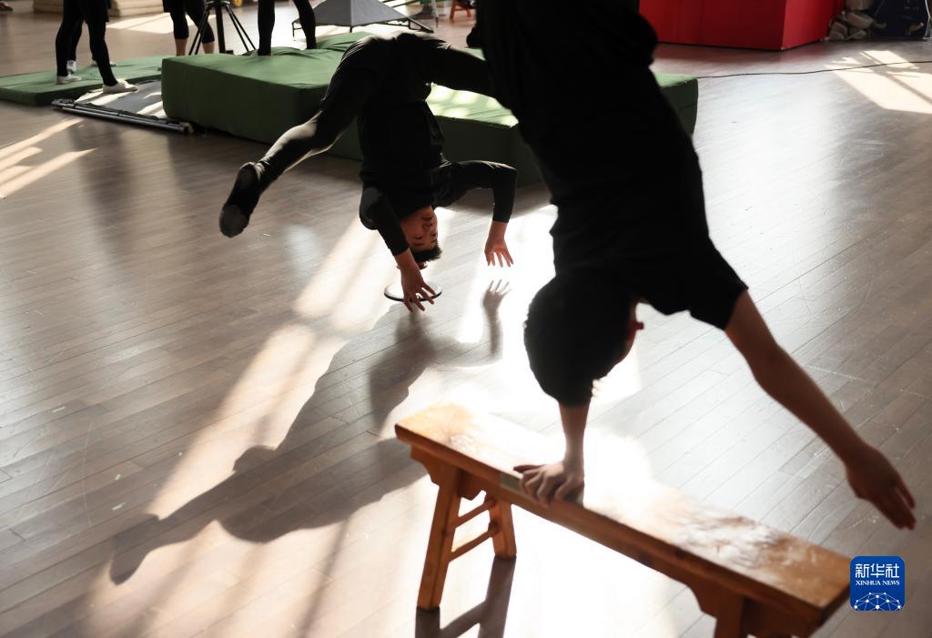 3月31日,演員們在位于江蘇省鹽城市建湖縣的江蘇省雜技團訓練。