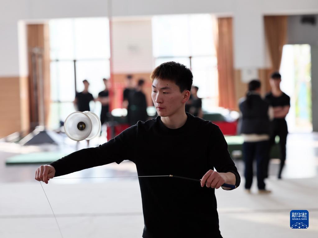 3月31日,演員在位于江蘇省鹽城市建湖縣的江蘇省雜技團訓練。