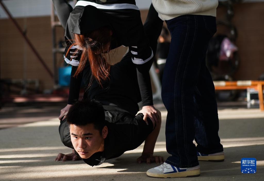3月31日,演員在位于江蘇省鹽城市建湖縣的江蘇省雜技團訓練。