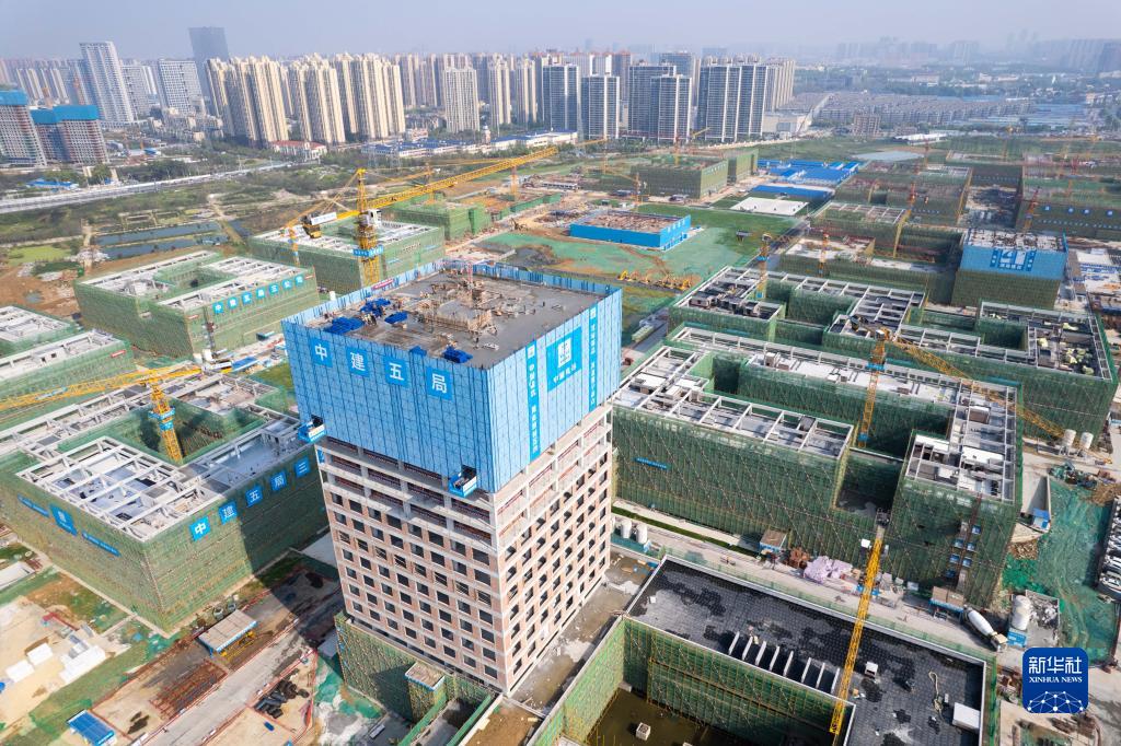 這是4月1日在長(cháng)沙岳麓山實(shí)驗室集聚區農大片區項目建設現場(chǎng)(無(wú)人機照片)。