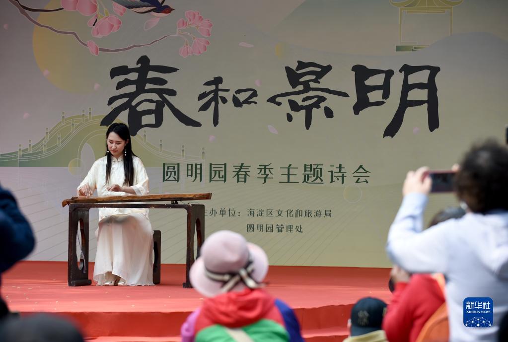 4月1日,一名青年古琴演奏家在圓明園春季主題詩(shī)會(huì )上彈奏古琴。