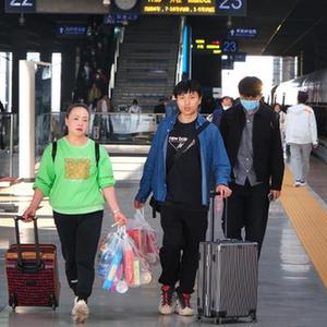 4月1日,天津西至香港西九龍G305次列車(chē)準備發(fā)車(chē),乘務(wù)人員與旅客在站臺上合影留念。