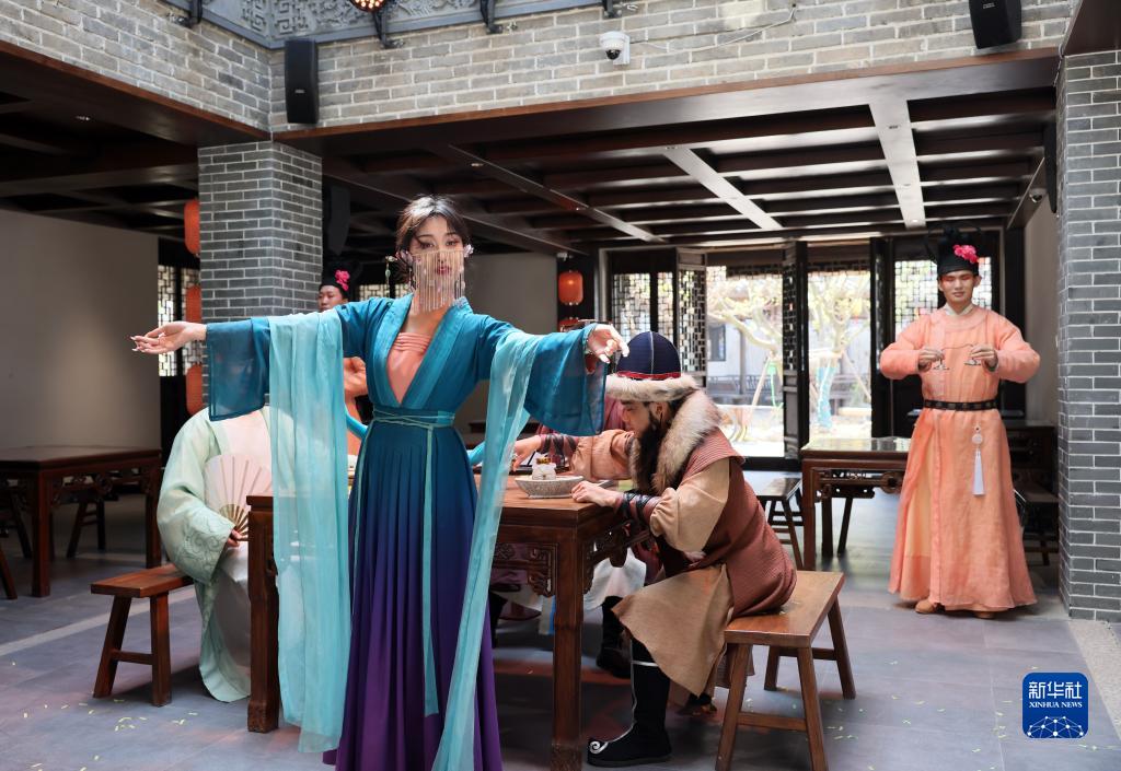 4月1日,演員在位于江蘇省鹽城市建湖縣的淮劇小鎮表演淮劇。