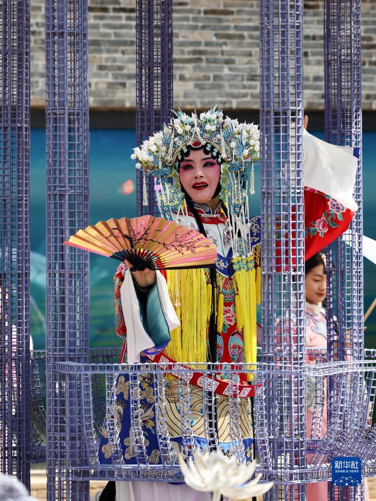 4月1日,演員在位于江蘇省鹽城市建湖縣的淮劇小鎮表演淮劇。