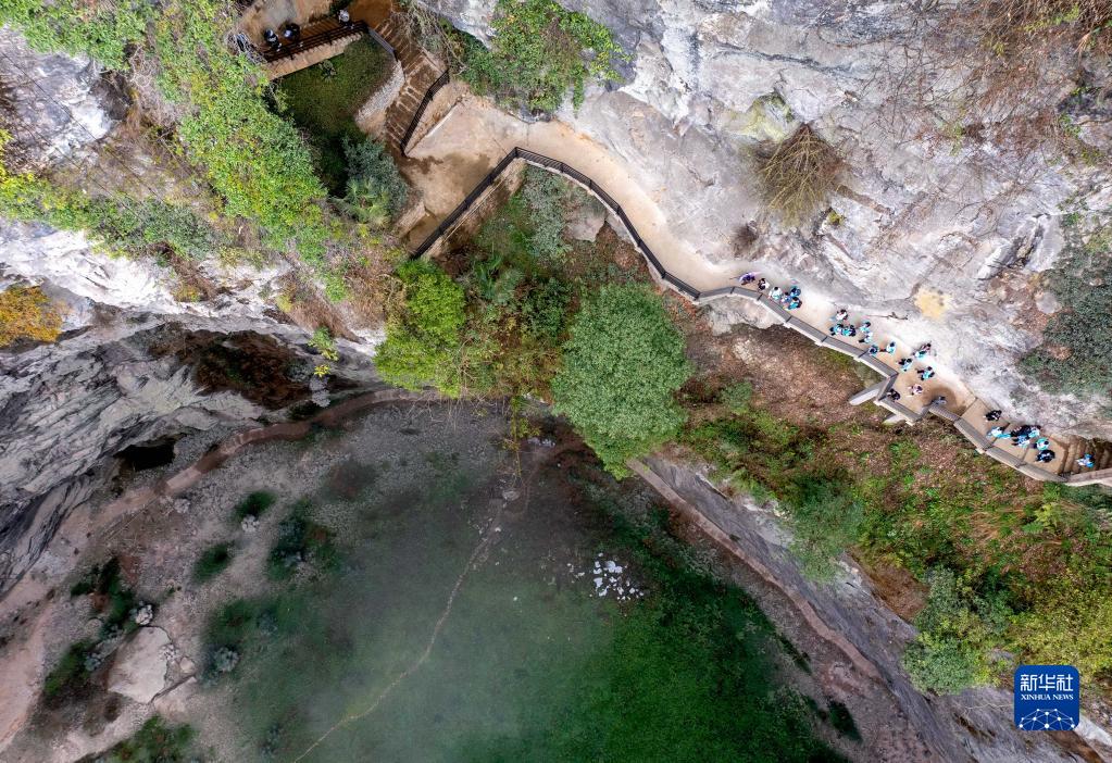 春暖花開(kāi)時(shí)節,在位于湖北省西部山區的宣恩縣矅天眼景區,眾多春季研學(xué)的師生在深達290余米的鑼圈巖天坑及周邊溶洞中進(jìn)行科普學(xué)習。