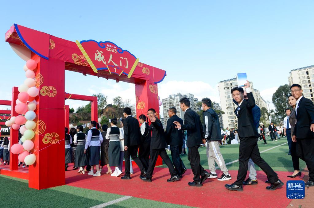 當日,四川省西昌市西昌一中舉辦2023年度成人禮,學(xué)生在成人禮上參加禮拜父母、跨越成人門(mén)、向未來(lái)寄語(yǔ)等儀式,致敬青春,開(kāi)啟人生新的旅程。