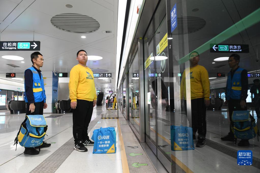 4月2日,黃志能(右)和爸爸黃少禮在地鐵站站臺等車(chē)。