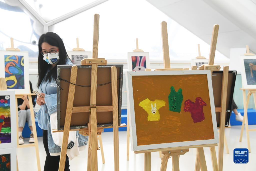 4月2日,市民在國家游泳中心“水立方”參觀(guān)融合兒童畫(huà)展。