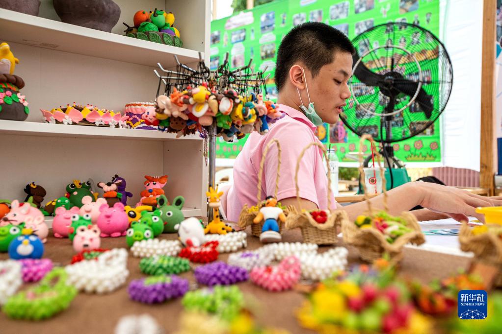 4月2日,在位于曼谷的泰國孤獨癥職業(yè)中心,一名孤獨癥患者制作手工藝品。
