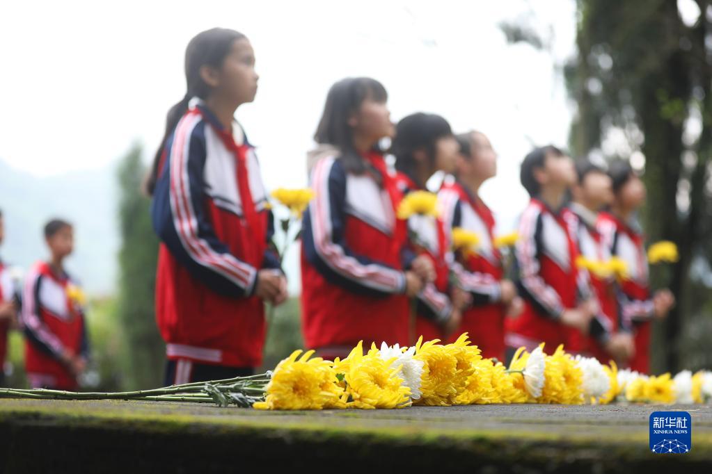 4月3日,江西省宜春市上高縣田心中心小學(xué)的孩子們來(lái)到當地馬鞍山革命烈士陵園開(kāi)展清明祭掃活動(dòng)。