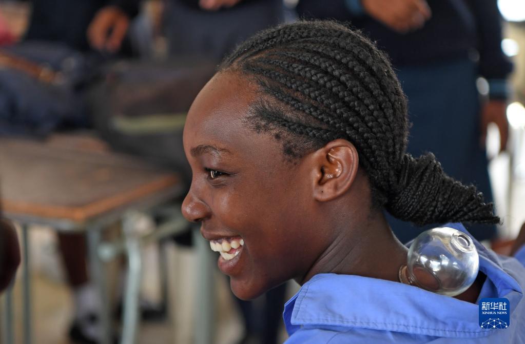 4月3日,在納米比亞溫得和克的伊曼紐爾·謝菲迪中學(xué)課堂上,一名學(xué)生體驗拔火罐。