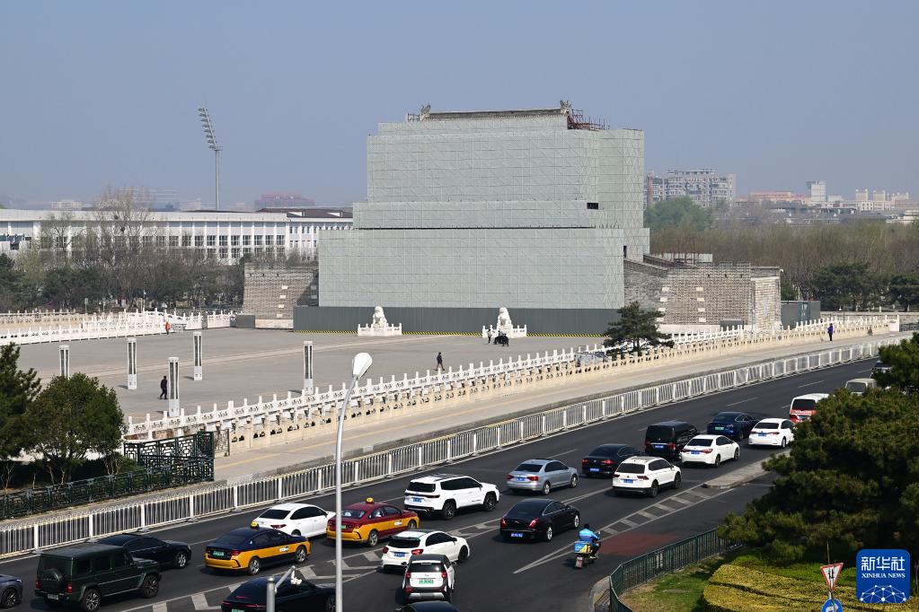 修繕維護中的永定門(mén)(3月29日攝)。新華社記者 李賀 攝