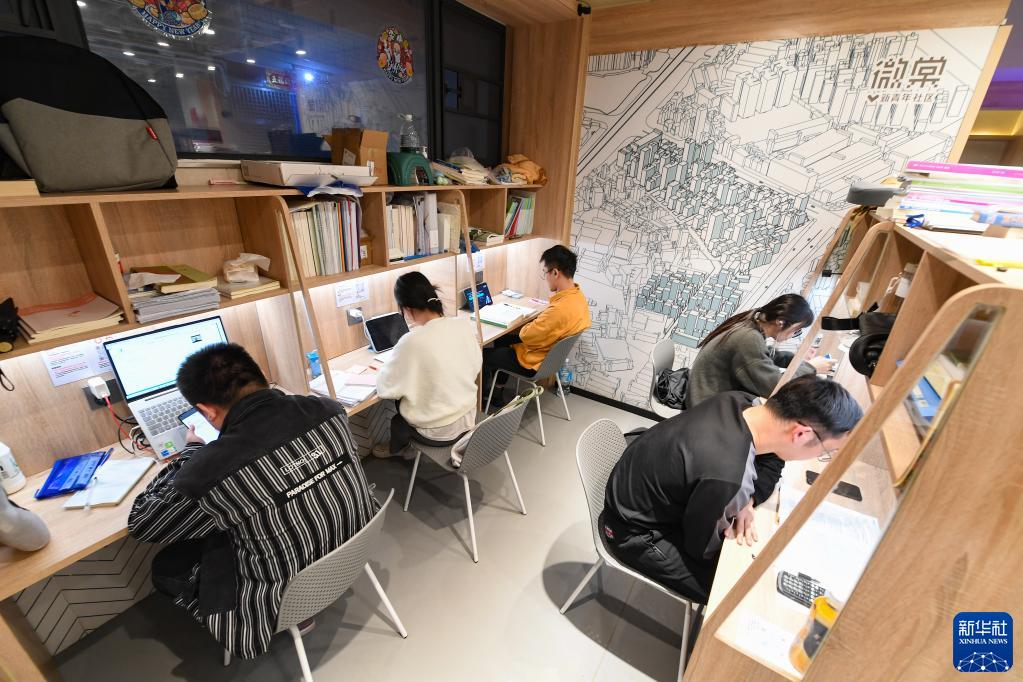 4月2日,在深圳市龍華區元芬村,青年公寓住戶(hù)在社區增設的自習室工作學(xué)習。