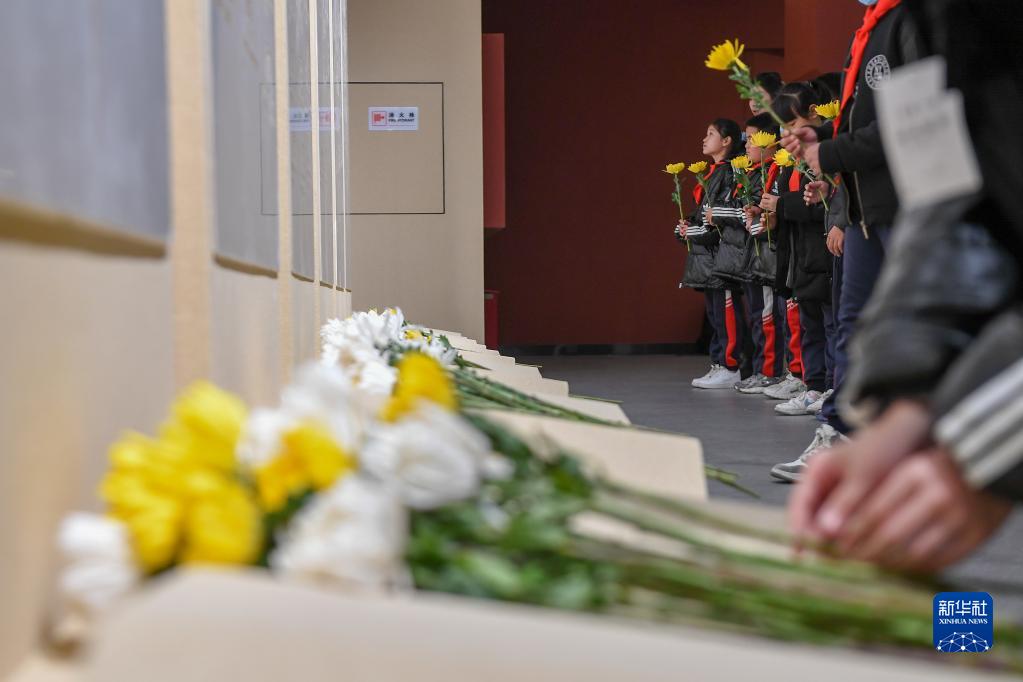 4月4日,學(xué)生在長(cháng)春偽滿(mǎn)皇宮博物院東北淪陷史陳列館向抗日英烈敬獻鮮花。