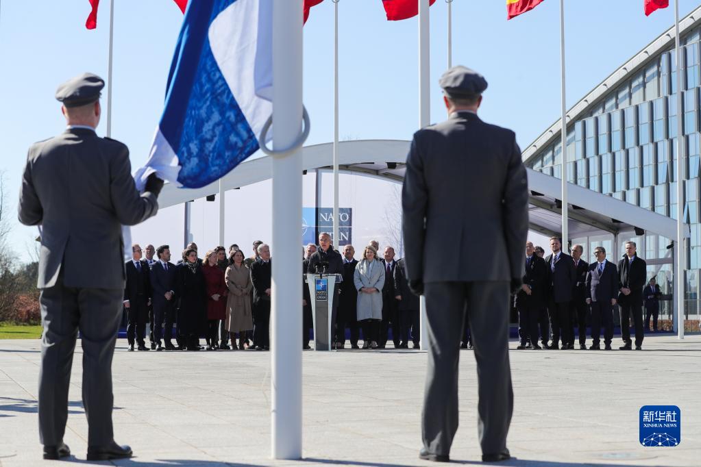 北大西洋公約組織(北約)4日下午在其位于布魯塞爾的總部舉行芬蘭加入北約儀式。芬蘭成為北約第31個(gè)成員國。新華社記者鄭煥松攝