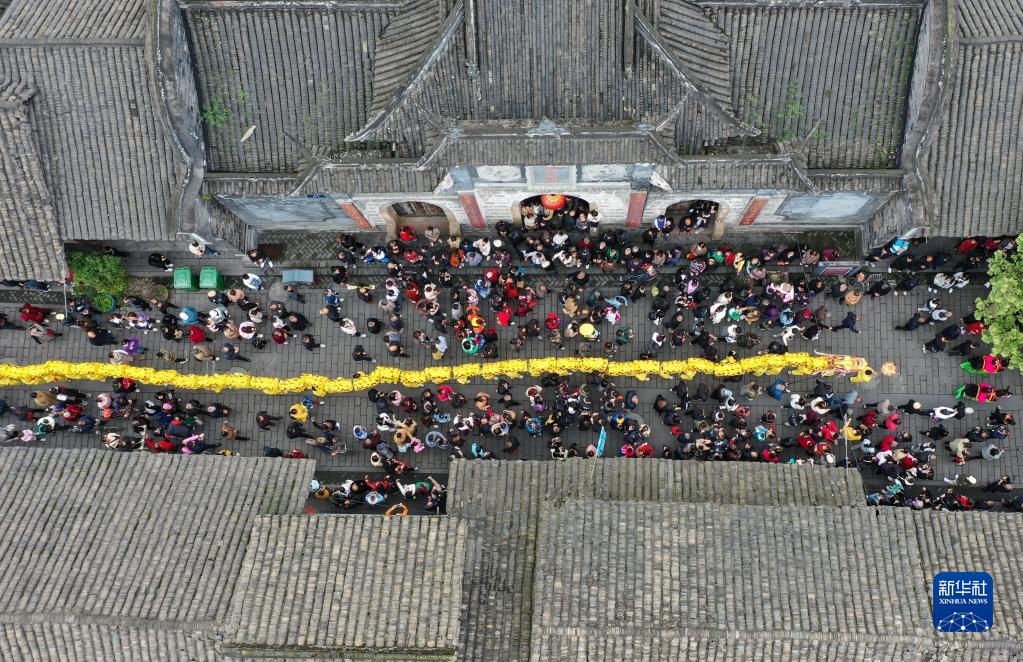 當日,崇州元通清明春臺會(huì )在四川成都崇州市元通古鎮拉開(kāi)帷幕。由269人手舉269截龍身匯聚成的“匯江老龍”,在古街上巡游。
