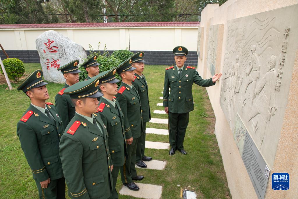4月5日,武警廣西總隊北海支隊組織緬懷英烈主題活動(dòng),紅色宣講員為官兵講述戰役故事。