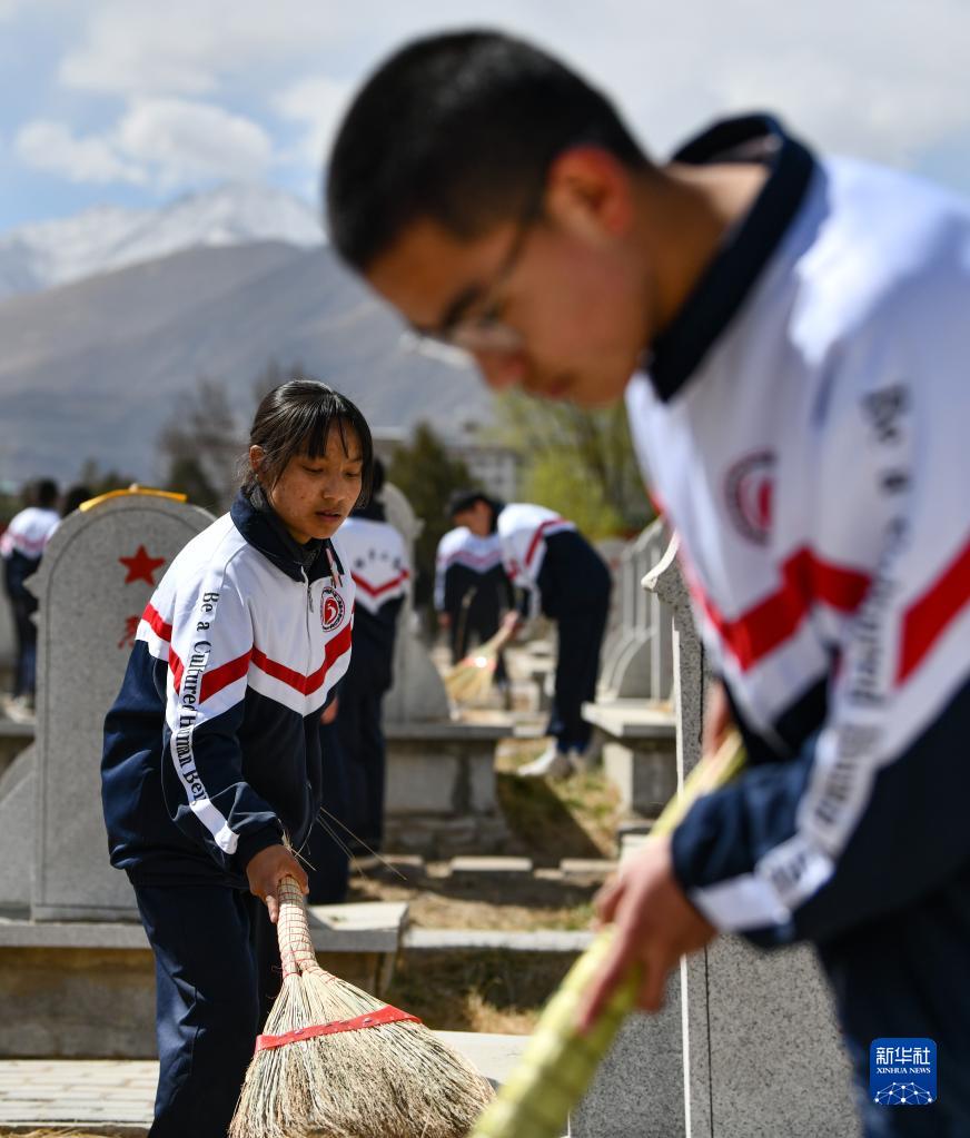 學(xué)生在拉薩烈士陵園掃墓(4月5日攝)。