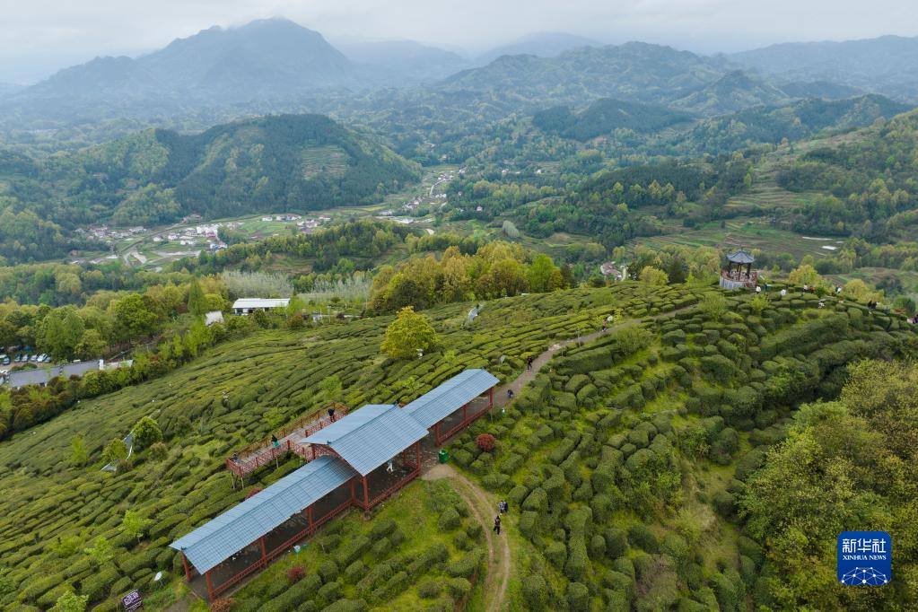 陜西省漢中市南鄭區牟家壩鎮一處茶園景色(4月5日攝,無(wú)人機照片)。