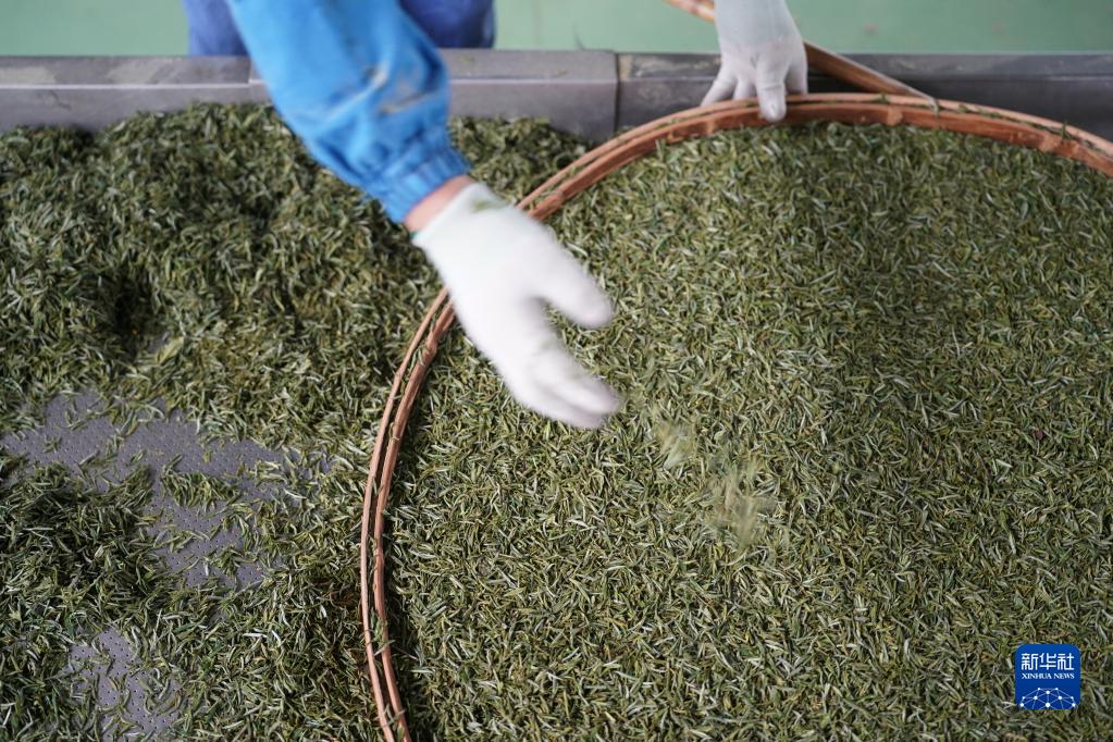 4月5日,陜西省漢中市南鄭區青樹(shù)鎮一家茶企的工作人員在生產(chǎn)線(xiàn)上工作。