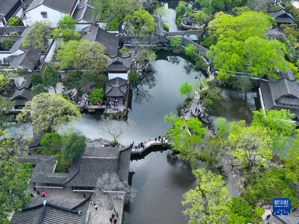 4月5日,游人在江蘇蘇州拙政園游覽。