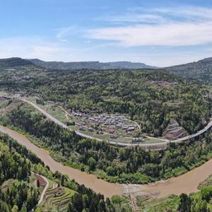 這是4月4日拍攝的鎮廣高速公路王坪至通江段局部(無(wú)人機照片)。