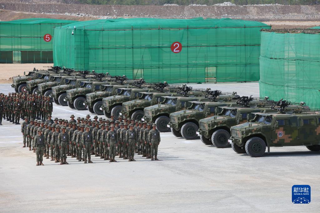 這是4月5日拍攝的參加聯(lián)演閉幕式的部隊。