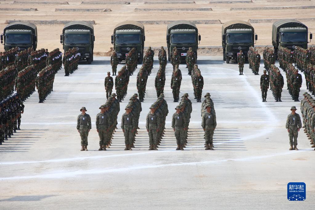 這是4月5日拍攝的參加聯(lián)演閉幕式的部隊。