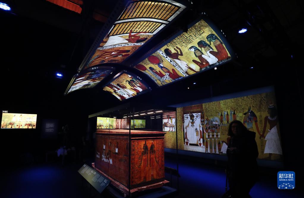 4月6日,媒體記者在法國巴黎參觀(guān)“拉美西斯和法老的黃金”埃及文物展。