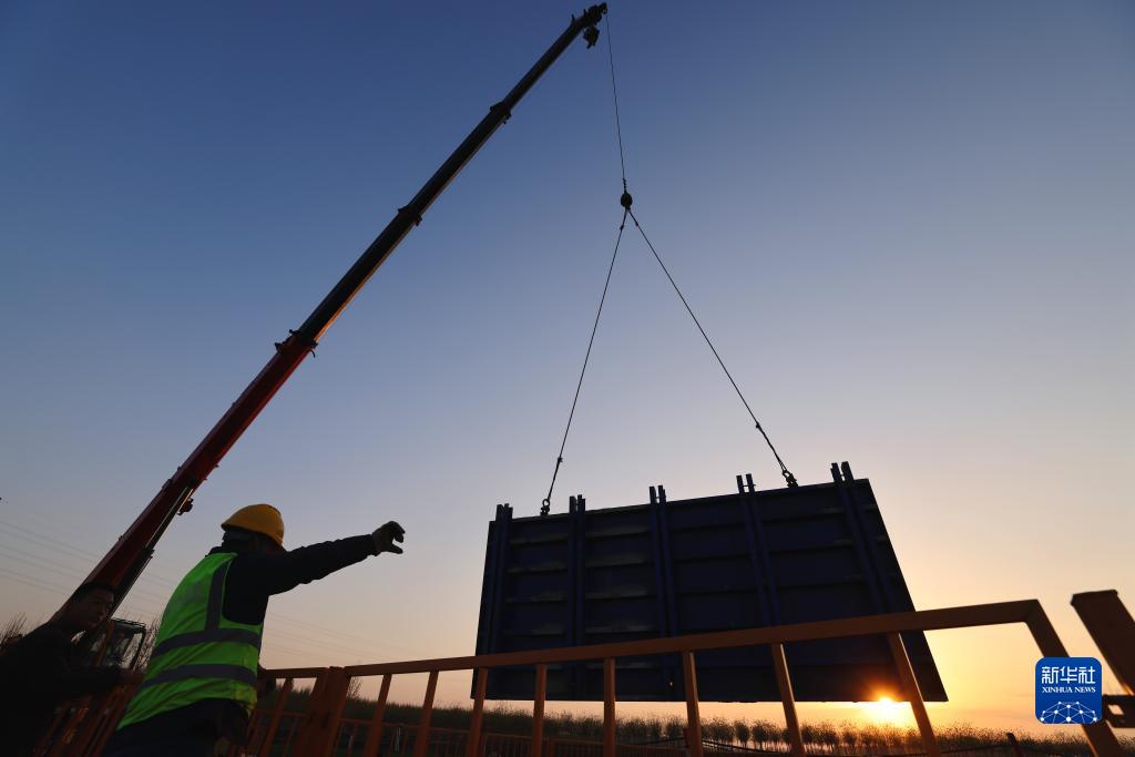 4月6日,雄商高鐵一線(xiàn)工人在位于河北省任丘市的建設現場(chǎng)施工。