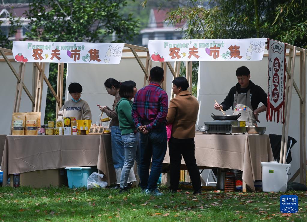 4月7日,匯聚眾多農產(chǎn)品及文創(chuàng )產(chǎn)品的“農夫市集”在新桐鄉小桐洲村香樟公園內開(kāi)市。