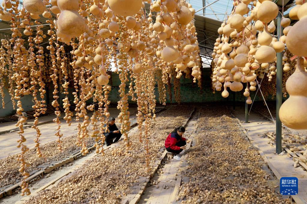 4月7日,邢臺市信都區會(huì )寧鎮張爾莊村村民在挑選葫蘆。