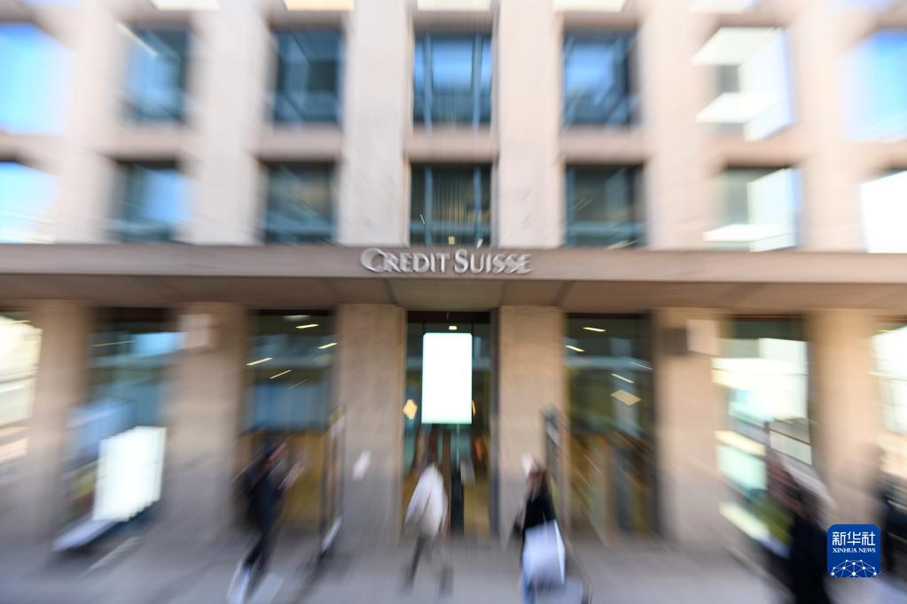 4月4日,在瑞士日內瓦,人們走過(guò)瑞士信貸銀行大樓。