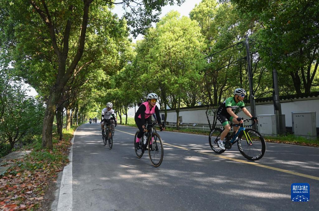 4月8日,騎行愛(ài)好者在浙江省諸暨市趙家鎮香榧國家森林公園參加健身騎行活動(dòng)。