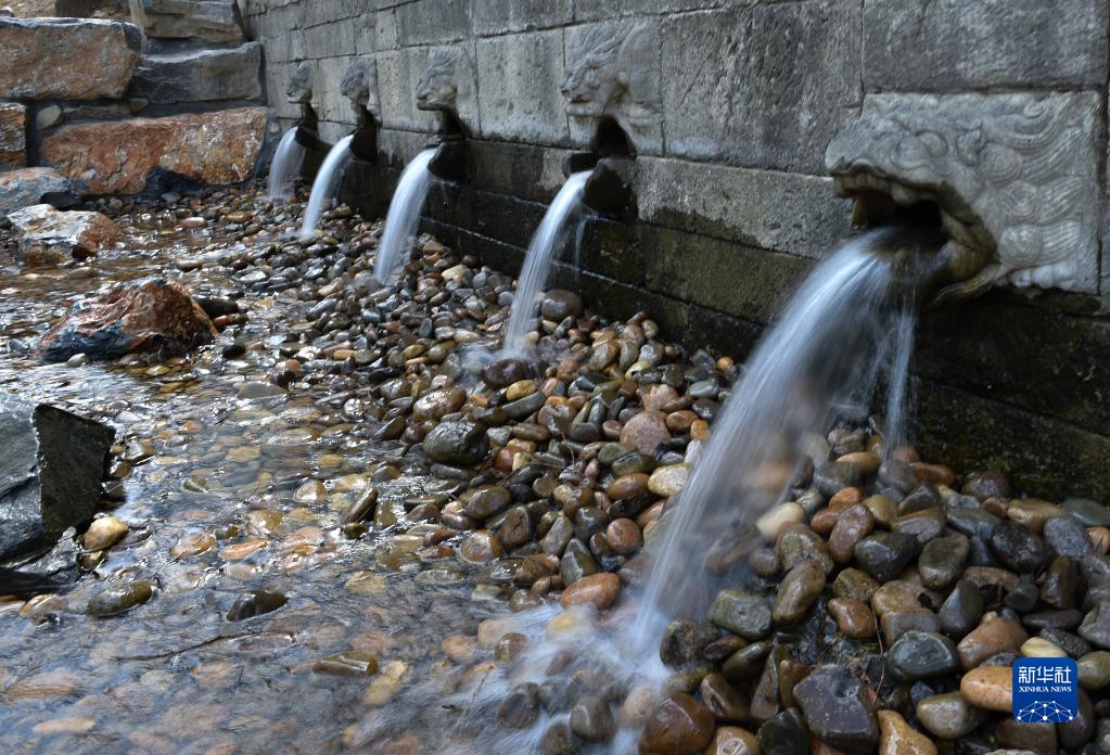 這是4月6日在位于北京市昌平區的大運河源頭遺址公園里拍攝的九龍池出水口。