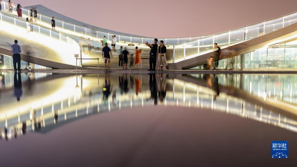 4月6日,游人在??跒场疤炜罩健斌A站觀(guān)賞夜景。