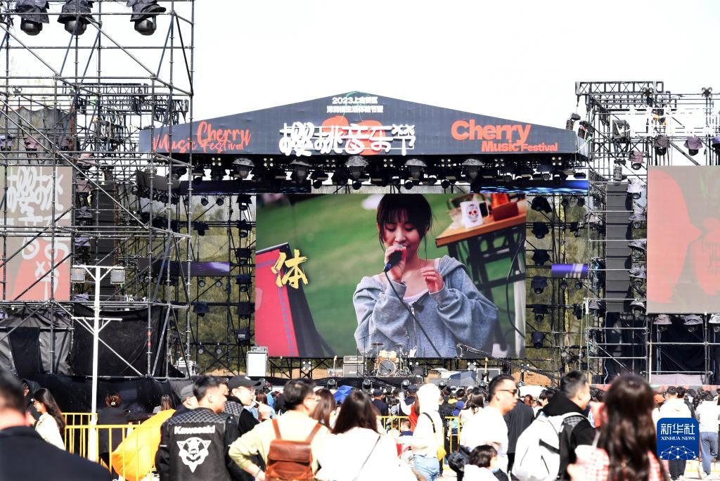 4月8日,觀(guān)眾來(lái)到櫻桃音樂(lè )節會(huì )場(chǎng)參加活動(dòng)。