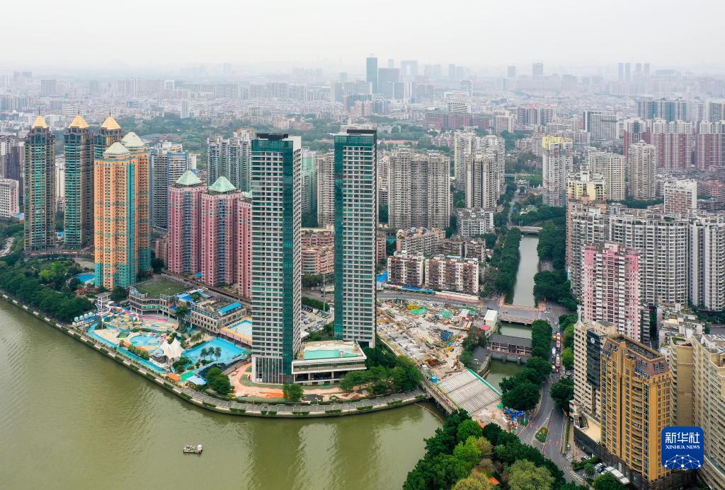 廣州地鐵10號線(xiàn)濱江東路站周邊被珠江和高樓環(huán)繞(4月8日攝,無(wú)人機照片)。