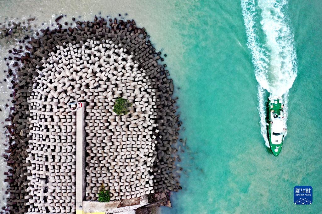 福建漳州海警局執法船在漳州東山灣海域開(kāi)展海上常態(tài)化巡航管控(2023年1月17日攝,無(wú)人機照片)。