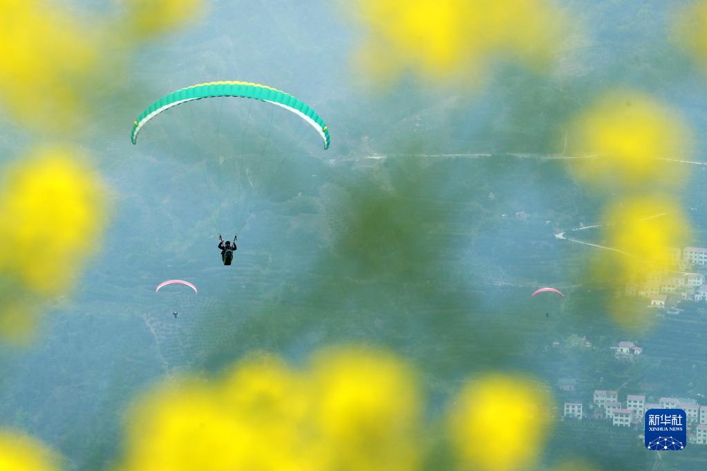 時(shí)下,三峽庫區湖北省宜昌市秭歸縣春橙豐收、橙花盛開(kāi),“花果同枝”的美景吸引游客前來(lái)觀(guān)賞游玩。近年來(lái),該縣依托當地特色生態(tài)資源,陸續推出滑翔傘飛行、摩托車(chē)比賽、龍舟競渡等特色旅游項目,促進(jìn)鄉村旅游蓬勃發(fā)展,帶動(dòng)當地村民在家門(mén)口實(shí)現就業(yè)增收。新華社發(fā)(王罡攝)