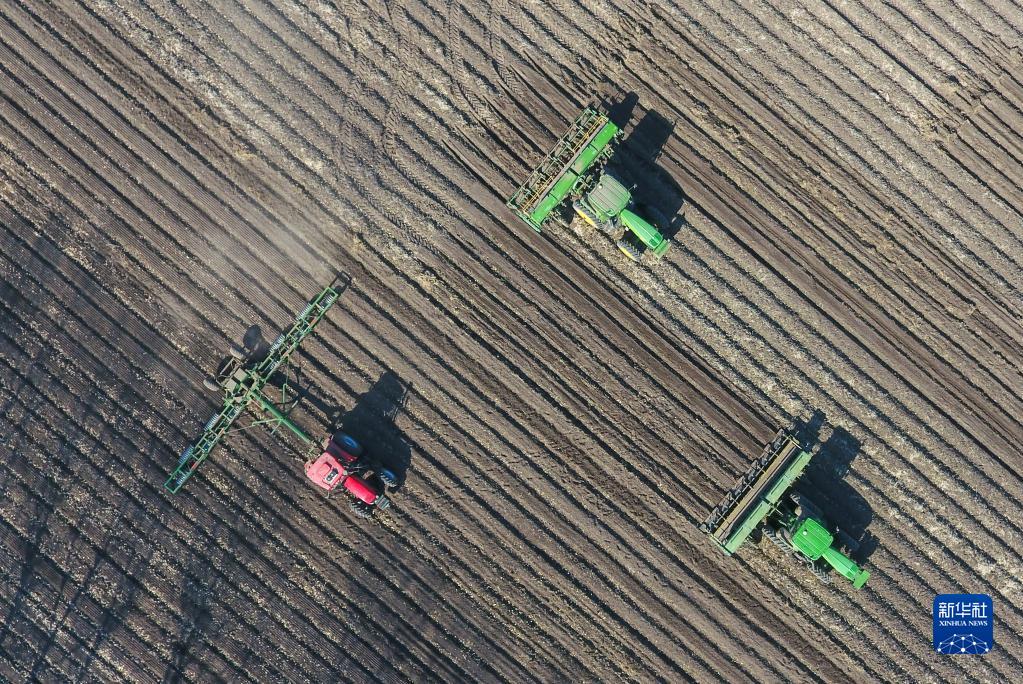 天氣漸暖,“大糧倉”黑龍江省迎來(lái)春耕季。近日,位于黑龍江省北安市的北大荒集團建設農場(chǎng)有限公司啟動(dòng)農田春耕生產(chǎn)作業(yè),該農場(chǎng)組織28臺大型拖拉機對即將播種的玉米和大豆農田進(jìn)行分層定量施肥作業(yè),同步對完成施肥的地塊進(jìn)行鎮壓保墑作業(yè)。30余萬(wàn)畝玉米和大豆農田的施肥與鎮壓保墑作業(yè)將于4月15日左右完成,以確保接下來(lái)的播種作業(yè)順利進(jìn)行。