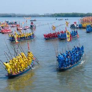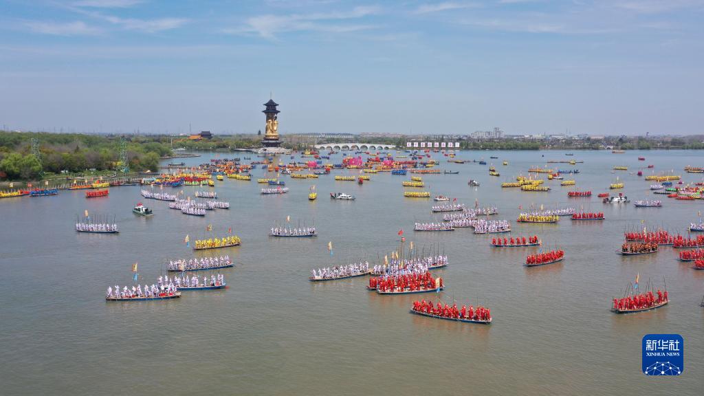 當日,2023年泰州姜堰溱潼會(huì )船節在江蘇省泰州市姜堰區溱湖國家濕地公園開(kāi)幕,數百條船只和萬(wàn)余名會(huì )船選手云集溱湖,演繹歷久彌新的民俗畫(huà)卷。