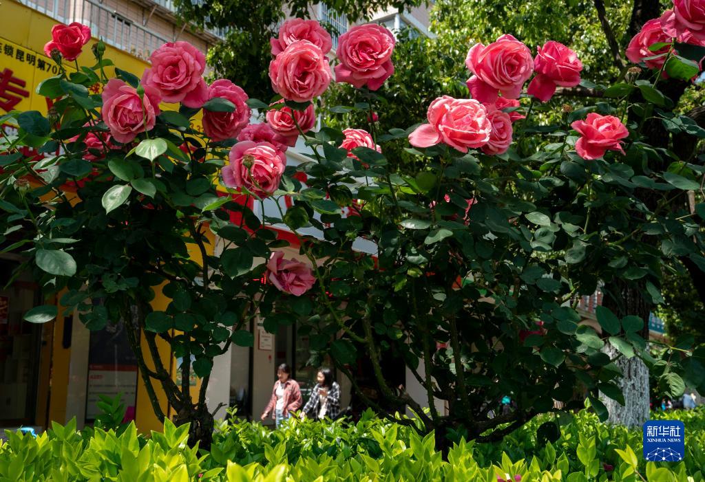 近日,云南省昆明市廣福路、日新中路等道路綠化帶內種植的樹(shù)狀月季進(jìn)入盛花期,為春城增添一道獨特的風(fēng)景。