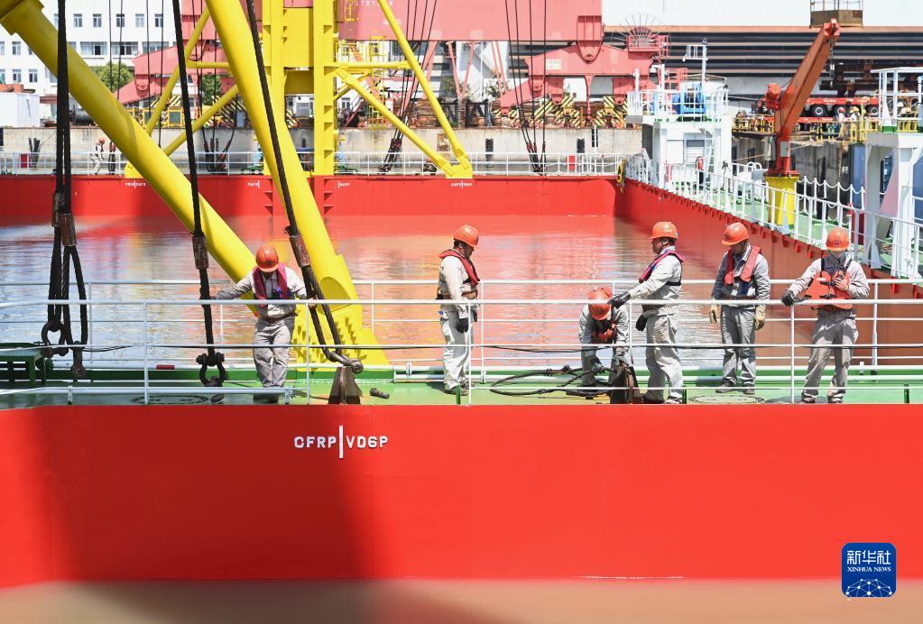 當日,“乾動(dòng)2號”深遠海養殖平臺下水儀式在位于福建福州市連江縣粗蘆島的馬尾造船股份有限公司舉行。