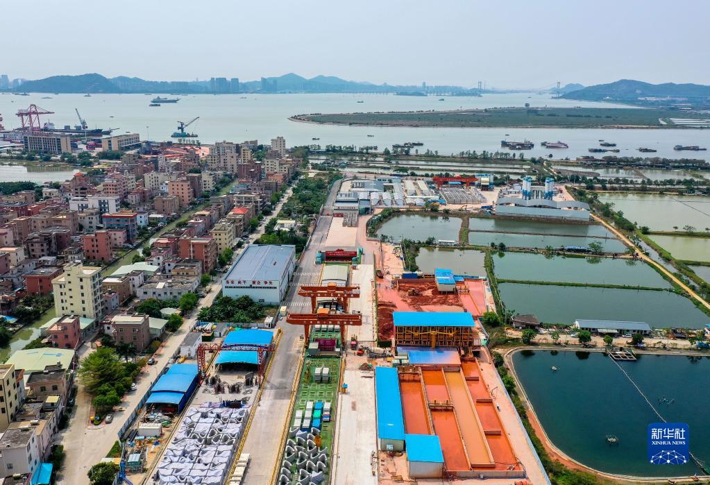 這是深江鐵路珠江口隧道東莞虎門(mén)段盾構起始點(diǎn)(4月7日攝,無(wú)人機照片)。