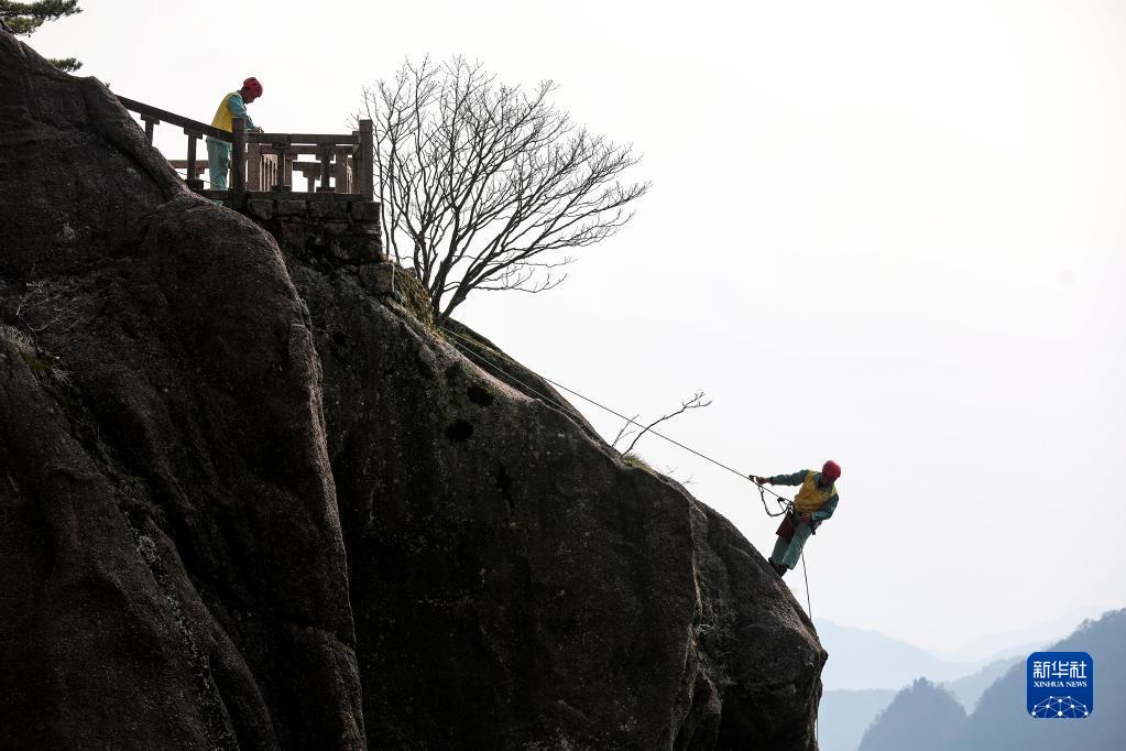 在安徽黃山風(fēng)景區,有這樣一群特殊的環(huán)衛工,他們常年攀爬在懸崖峭壁間清理垃圾。玉屏環(huán)衛所的李培生是他們中的一員,20多年來(lái),李培生累計放繩長(cháng)度達1800公里,除了巡查并清理垃圾,還經(jīng)常幫助游客撿拾掉下懸崖的物品,2012年被評為“中國好人”。黃山風(fēng)景區一共有18名像李培生這樣的放繩工,他們用辛勤的汗水守護著(zhù)黃山的美麗。