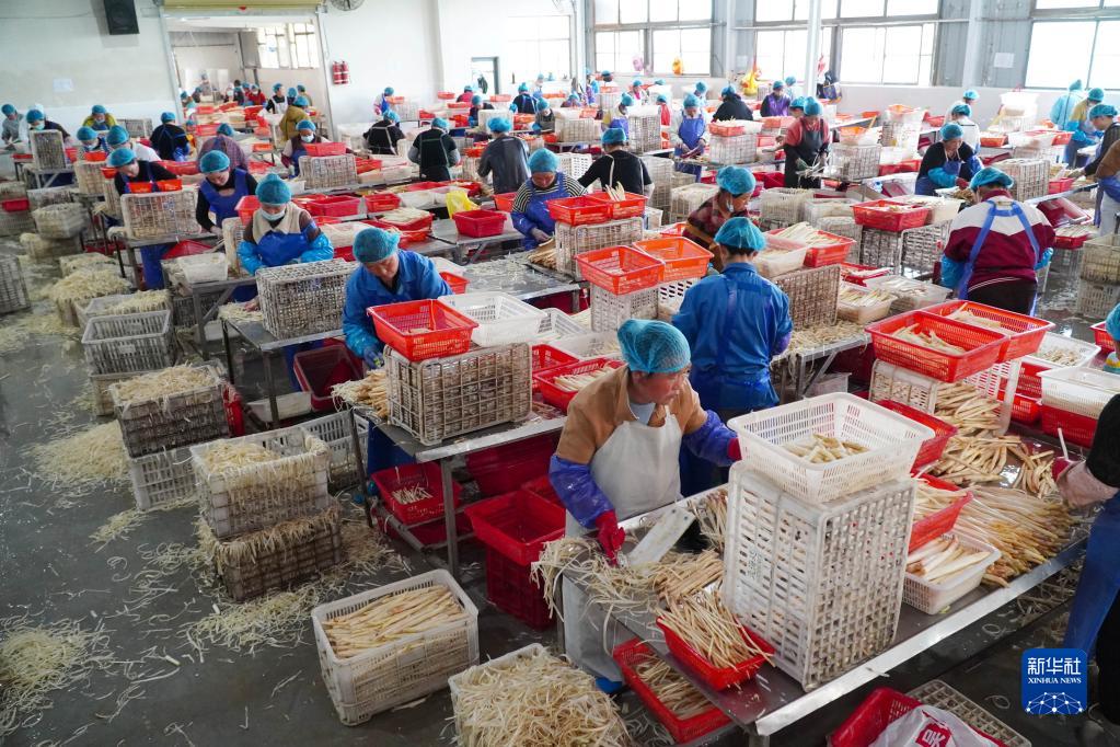 近日,山東省菏澤市單縣農戶(hù)種植的10萬(wàn)多畝蘆筍進(jìn)入收獲期,蘆筍種植戶(hù)們忙著(zhù)收獲新鮮的蘆筍,并對蘆筍進(jìn)行清洗、去皮等初加工。近年來(lái),當地根據市場(chǎng)需求,發(fā)展蘆筍產(chǎn)業(yè),帶動(dòng)村民就業(yè)增收,目前全縣蘆筍種植戶(hù)約3.7萬(wàn)戶(hù),年產(chǎn)值超過(guò)20億元。