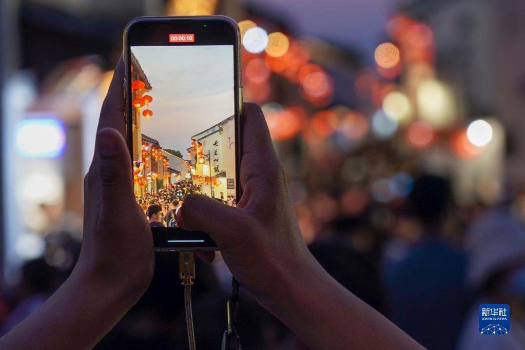 春光正好,不少游客前往江蘇蘇州山塘街游玩,感受江南水鄉特色。