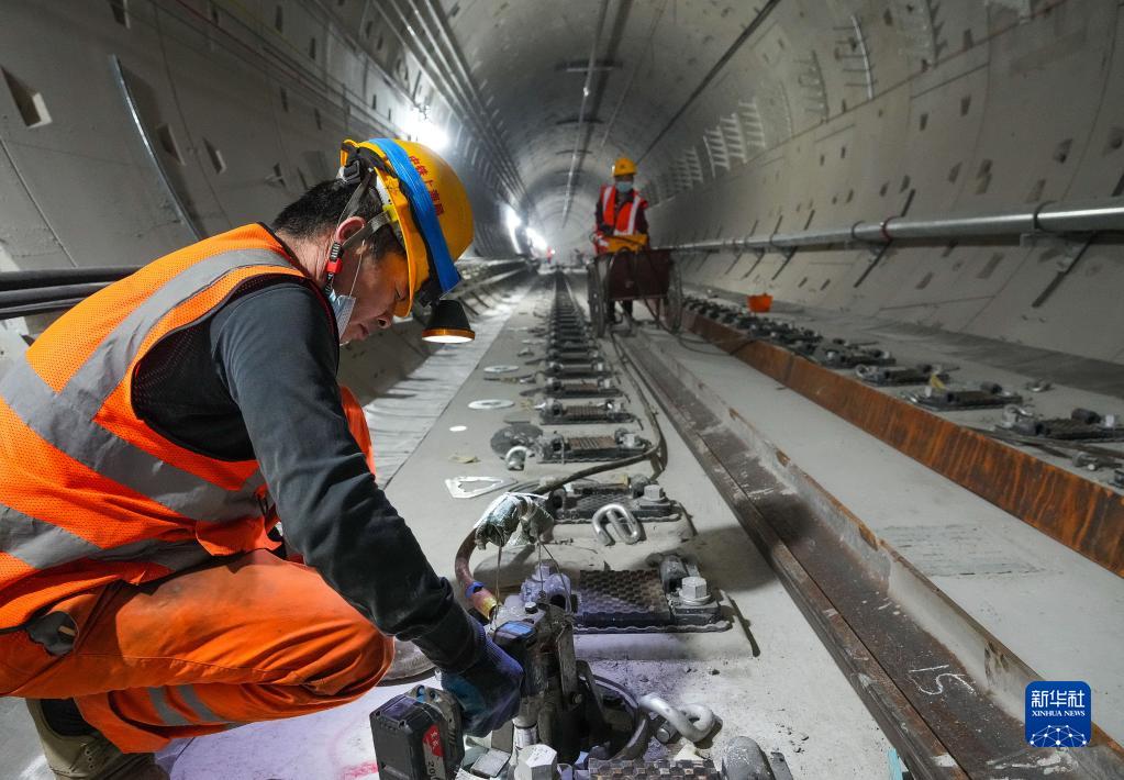 4月11日,施工人員在廣州地鐵11號線(xiàn)芳村站至芳村東站區間進(jìn)行鋼彈簧浮置板頂升作業(yè)。